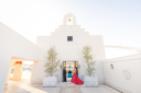 あざやかに咲いたブーゲンビリアなど、ミコノス島を訪れたかのようなフォトスポットが充実。ずっと記憶に残るフォトシーンを残せます。