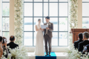 アーチ型の窓いっぱいに海の眺めが広がる祭壇で誓いの時を。家族やゲストに見守られ、ここから人生の新たな物語が始まります。