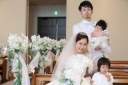 まずはウェディングドレスと白のタキシードでお二人の愛を誓い合うシーンの撮影♪