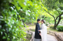 王子様のキスで目が覚めて‥まるでおとぎ話のようなワンシーンですね!新緑に白いウェディングドレスが映えわたりますね!