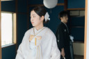 洋装でよく見るブーケでお顔を隠すショットですが、和装でも新婦様の末広を使ったお顔隠しショット、とっても可愛いです♡