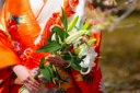 新婦様こだわりのブーケはまるで熱帯魚のように色鮮やか!フォトジェリッシュ金沢では一緒に撮影したいアイテムや思い出の品等もお持ち込み可能です!