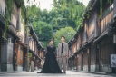 スタイル抜 群のお二人!どこに立っても絵になります!藍の間、茜の間、和室から続くスタジオの三つの部屋を繋ぐ渡り廊下。その奥に佇むだけでこんなに素敵に♪