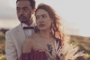 一度サロンに戻り、衣装チェンジ♪新婦様は、ピンクベージュのマーメイドドレス。新郎様は、レッドブラウン。ガラッと雰囲気をサンセットにもっていきました!!