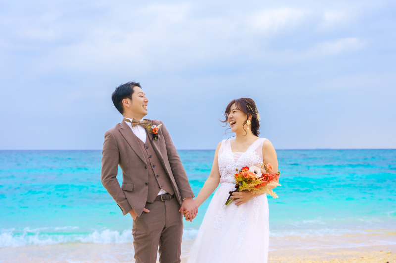 沖縄ならではの素晴らしいロケーションでフォトジェニックな写真を撮影します。ウェディングプランには衣装、ヘアメイク(新婦)、装飾品、撮影小物など撮影に必要なものほとんどが含まれているので身軽にご来店いただけます。前撮りでご検討の方にはドローン撮影、ムービー撮影プランもご用意しております。他にもご家族様やペットとの撮影、LGBT、ソロウェディングなどあらゆるシーンに対応致します。 花嫁の個性を活かした映えるメイクとトレンドを取り入れたドレスで新しい自分に出会えます。お二人にとって素敵な思い出に。