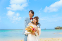 天浜ビーチにて、ウェディング撮影スタート!沖縄の景色を堪能中。