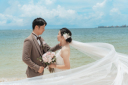 サンセット撮影の時のベールはよりロマンティックで幻想的!