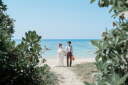透き通る青い海におふたりの後ろ姿をドローンで撮影!