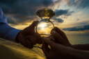 海をバックに大きな指輪でプロポーズシーン♪手元のお写真もオシャレなんです♡