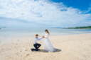 可愛らしい新婦さんと沖縄が似合う新郎さん♪初めは緊張していたお二人!だんだん慣れてきてからは、スタッフのリクエストやおふざけにもノリノリで楽しい撮影となりました♪また、沖縄にきてくださいね〜♪
