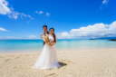 沖縄の暑さに負けないくらいのお二人のテンション!青い空と海にぴったりですね♪