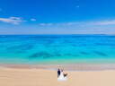 海辺を仲良くお散歩する2人をドローンで上空から撮影しました♪
