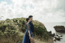 ザネー浜の崖で後ろ姿を撮影♪空と海がきれい〜!晴れて良かったです!