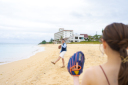 キラキラ輝くビーチのそばを歩いて撮影しました。楽しそうに見つめ合っています♡"