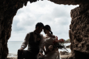 アダンの木やら沖縄の自然に囲まれるお二人。大人っぽい表情で。