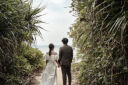 崖に繋がる自然豊かな小道で撮影☺︎見つめ合うお二人♡