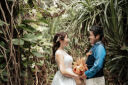 続いて、新郎さん新婦さんのお二人ショットの撮影です^ ^ ヤシの木の前で