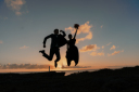 海バックに向かい合ってハグタイムー♪ 爽やかなお二人ですね^ ^