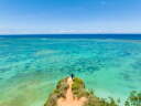 見つめ合うお二人の後ろ姿を撮影〜 鮮やかなビーチに映えるお二人♡