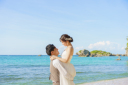 透き通る海に青空が綺麗な景色とお二人をドローン撮影!