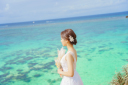 青い海と空にお二人を一緒にドローン撮影♩鮮やかに映える天気〜