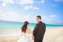 みどりが広がる砂浜で寝そべってもらいました!見つめ合うお二人♡