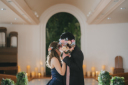 明るいお時間帯でもしっかりとキャンドルの明かりがお二人を包み込みますバージンロードに反射し幻想的な一枚に…♡