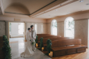 スタジオへ移動したおふたり桜のスタジオとおふたりの衣装がとてもよく映えます♡