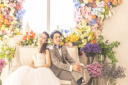 柔らかい光と色とりどりのお花に囲まれたおふたりに違和感なし!