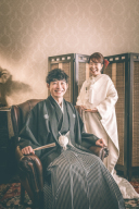 真っ白なキャンパスの前で語り合うお二人♪シンプルな背景に映えます♡