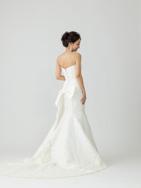 選び抜かれたラインナップ。大阪店で非常に人気のマーメイドドレス。女性らしいしなやかな曲線美とシルエットが演出できます。トレーンには、繊細で贅沢なビジューとレースの装飾をプラス。※取り扱いは予告なく終了する場合がございます。了承ください