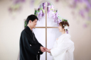藤が成る、和のチャペルでの1枚。藤の花言葉は『歓迎』。