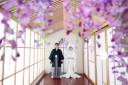 純白の背景に映えるおふたり。凛とした空気と清楚な美しさを感じる一枚です。