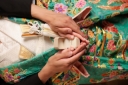 うつむいた視線が美しい1枚。落ち着いた色合いの背景とブーケがとてもお似合いです♪