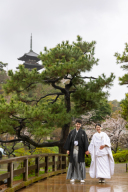 久良岐能舞台は紅葉が大変綺麗なエリアです。特に石畳の上でおふたりが歩いているショットは和装ならではのお写真になります。