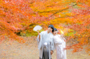 和装なら絶対紅葉をバックに撮りたいと思っていました。緊張することもなく、とても楽しく撮影できました。普段の私たちが思う存分表出できた写真に出来上がりました。本当にありがとうございました。