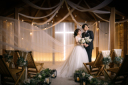 南国リゾートを思わせるゴージャスかつエキゾチックなチャペルで。ご新婦様の振り向きショット。
