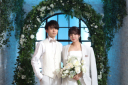 鮮やかなブーゲンビリアに包まれ、柔らかく微笑むおふたり。花と光に祝福された特別なひととき。
