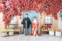 和装を纏いやさしい笑顔で見つめ合うお二人を、やわらかい光がつつみます