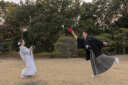 お持ち込みアイテムを使って撮影した1枚です。タキシードとも相性バッチリです。