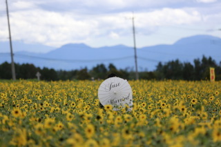 ひまわり畑に入っているように撮影していただけたり、撮影小物も貸し出してくださって色々なバリエーションの写真が撮れました。 リクエストの構図での撮影もしていただけます。