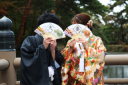 お城の石垣を背景にしてクールに。和装とお城は相性がいいです。