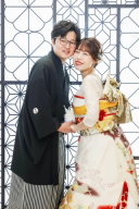 気品あふれる紋付袴と、白と赤の美しい白無垢。お二人の晴れやかな笑顔が輝きました。