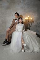 まるで王宮に佇むプリンセスとプリンスのように。気品あふれる佇まいと、きらめくドレスがふたりの美しさを引き立てます。