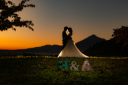 湖を背景に交わす視線と指先。まるで誓いをもう一度なぞるような、やさしい瞬間。