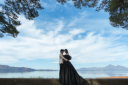 オレンジに染まるコキア畑。やわらかな光の中で寄り添うふたり。時間が止まったみたいだった。