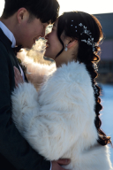 ベールに二人で入って窓から差し込む光を浴びて撮影した1枚です。