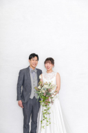 ご新郎様のお気に入りの背景で二人でシンプルに撮影。