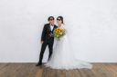 シンプル背景の次はチャペル風の背景で。お二人のキリッとした表情も素敵ですね。