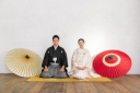 ご新婦様もソロショット。扇子を手元に添えて目線をもらったショット。